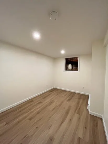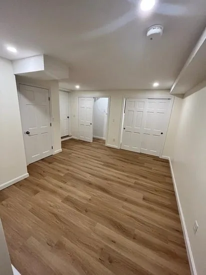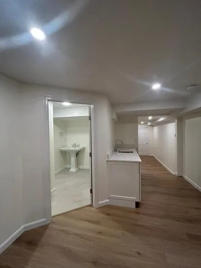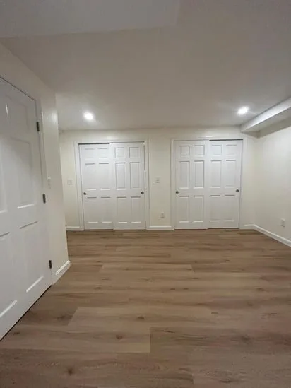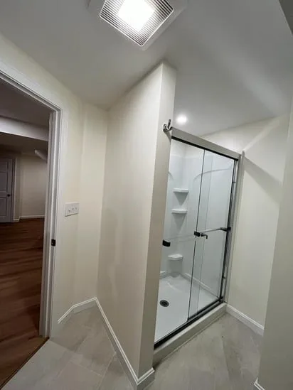 This basement remodeling project focused on transforming a basic basement into a bright, functional living area. The space now features new vinyl plank flooring, modern recessed lighting, and smooth white walls that enhance both natural and artificial light. In addition, a sleek bathroom with a glass shower enclosure and an efficient layout was added to ensure comfort and practicality. Overall, this renovation created a fresh, cohesive space designed for relaxation and everyday living.