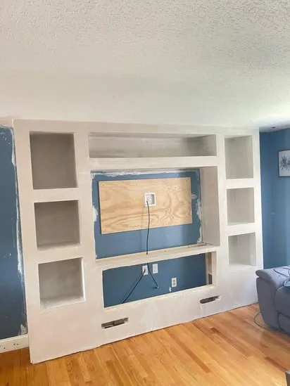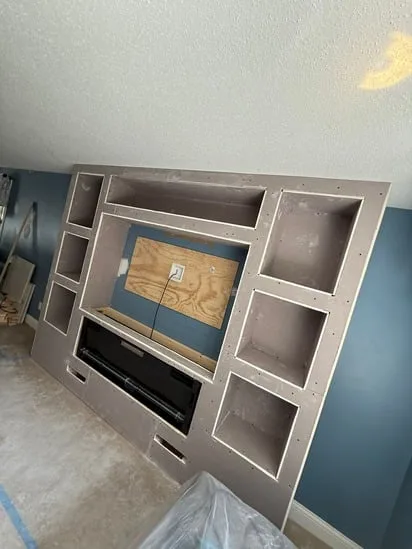 This project involved the construction of a built-in entertainment wall, designed to provide both functionality and a modern aesthetic. As the work progressed, transitional steps included framing, drywall installation, and precise cutouts for shelving and the fireplace unit. Furthermore, electrical integration and cable management were addressed to ensure a clean, seamless appearance. Ultimately, the entertainment wall transformed the living space into a practical yet stylish focal point, combining storage, display areas, and media integration in one cohesive structure.