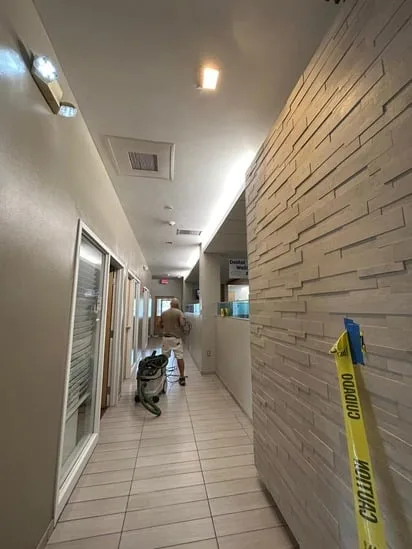 This project focused on finish work and painting within a dental clinic, with emphasis on corridors and shared interior areas. To start, surface preparation was performed on walls, doors, and trim to ensure smooth finishes and consistent results. Next, interior painting was applied using neutral, healthcare-appropriate colors to improve brightness and visual continuity throughout the space. Additionally, ceiling finishes and detailed work around glazing, frames, and transitions were completed to align with the clinic’s functional layout. As a result, the interior presents a clean, uniform appearance that supports daily dental operations and patient circulation.