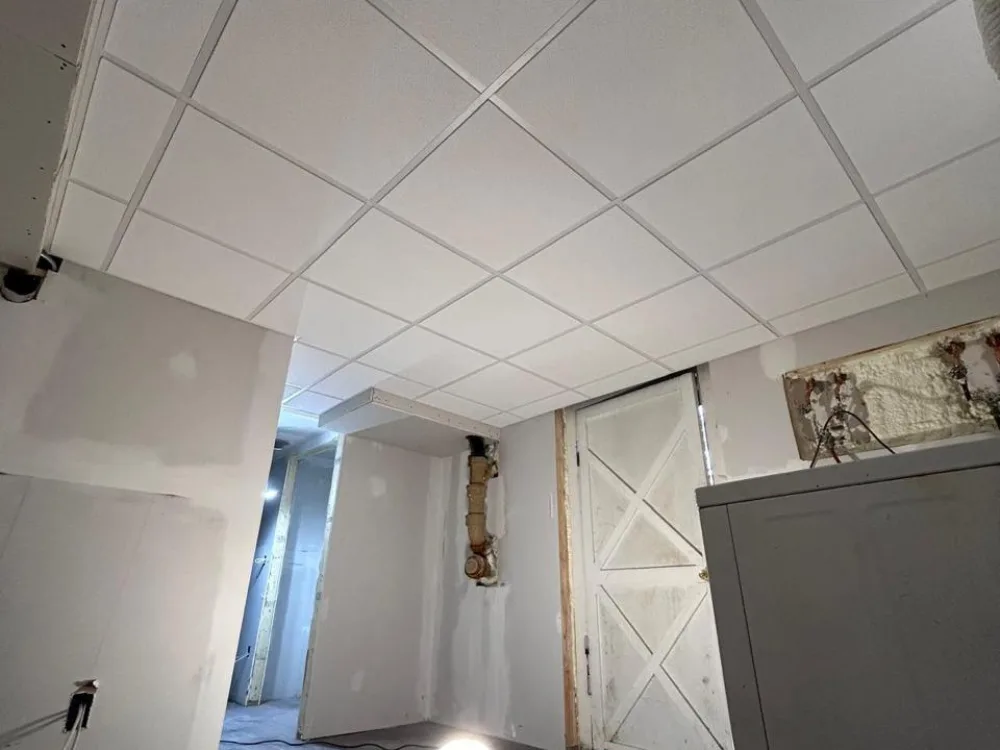 This project involved installing a drop ceiling in a finished basement, enhancing both the