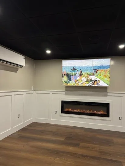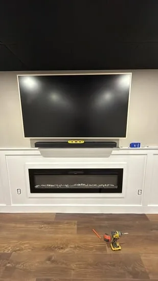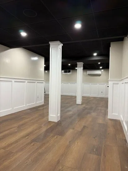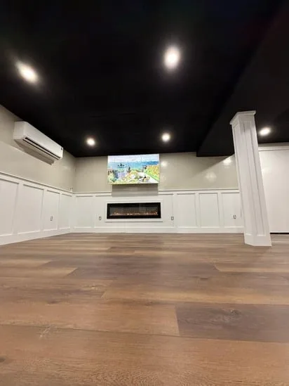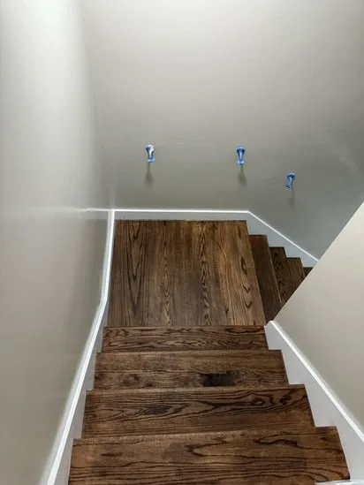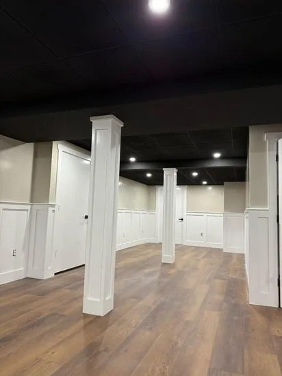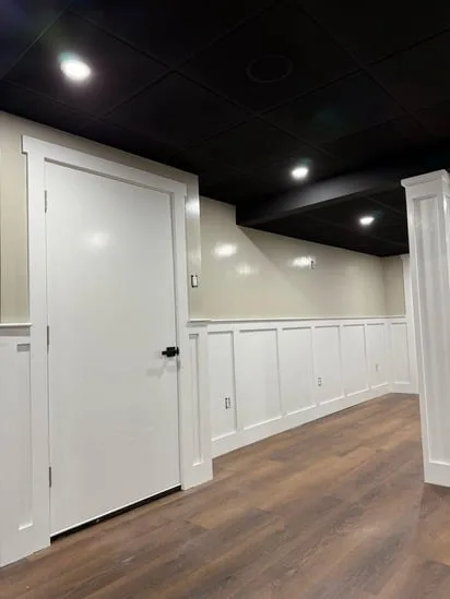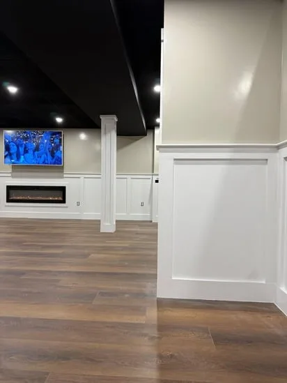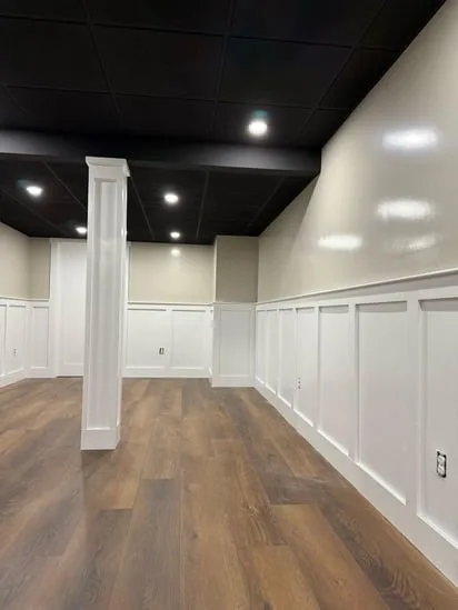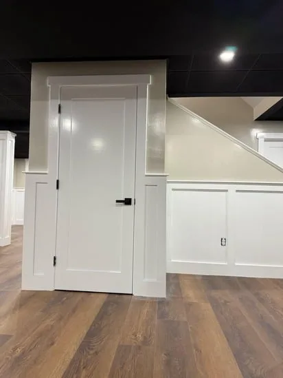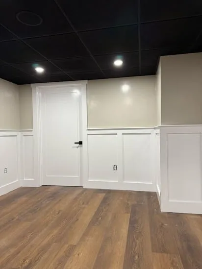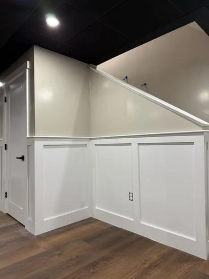 This small painting wall detail project focuses on creating a clean, modern aesthetic with light neutral walls, white trim, and wooden flooring. The combination enhances the bright, airy atmosphere of the space. The white trim adds sophistication while perfectly complementing the wooden flooring. This balance of elements makes the room feel inviting and stylish, offering a visually appealing environment.